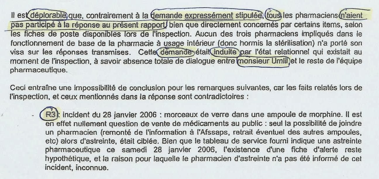 les pharmaciens n’aient pas participé à la réponse au présent rapport… ». Pourtant, l'injonction de l'inspecteur était claire :
